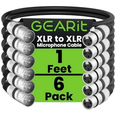 GearIT XLR Microphone Cable (1 Feet, 6 Pack) Male to Female 3 Pin Balanced Shielded for Mic Mixer, Recording Studio, Podcast Black
