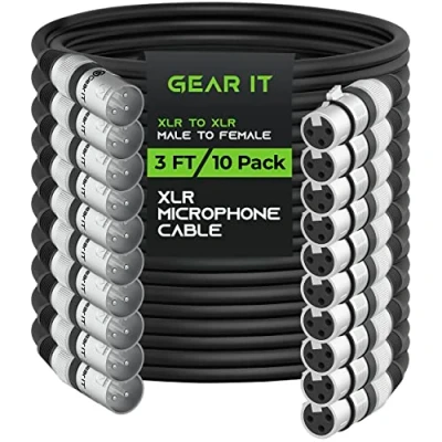 GearIT XLR to Microphone Cable (3 Feet, 10 Pack) Male Female Mic 3 Pin Balanced Shielded for Mixer, Recording Studio, Podcast Black, 3ft, Pack