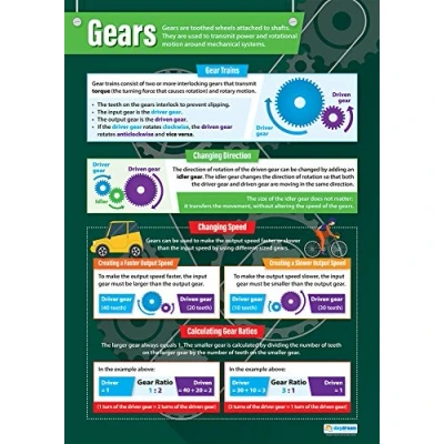 Gears Design & Technology Posters Laminated Gloss Paper measuring 850mm x 594mm (A1) and Classroom Education Charts by Daydream