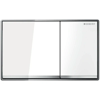 National Shower SparesGeberit Omega60 dual flush plate - white glass. Genuine brand new Geberit product, covered by a Geberit manufacturer's guarantee.