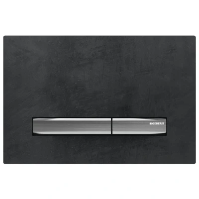 Geberit Sigma50 Dual Flush Plate - Chrome / Mustang Slate (115.788.JM.2). For flush actuation with Sigma concealed cisterns. Easy-to-clean coated actuator buttons. Sound-absorbing actuator rods, tool-free fast adjustment. Genuine brand new Geberit product, covered by a Geberit manufacturer's guarantee.