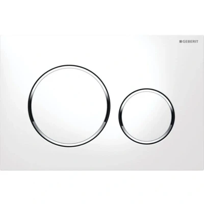 National Shower SparesGeberit Sigma20 Dual Flush Plate - White/Gloss Chrome. White plate with gloss chrome trim rings. Genuine brand new Geberit product, covered by a Geberit manufacturer's guarantee.