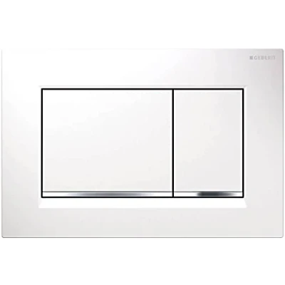 National Shower SparesGeberit Sigma30 Dual Flush Plate - White/Gloss Chrome. White plate with Gloss Chrome trim. Genuine brand new Geberit product, covered by a Geberit manufacturer's guarantee.