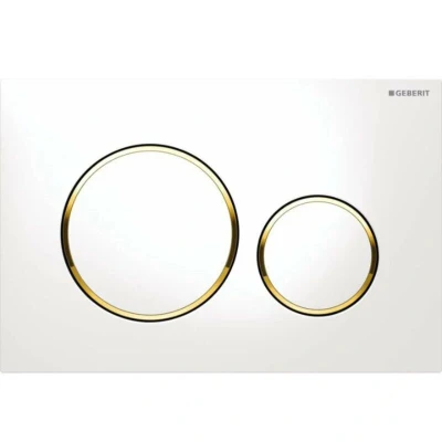 National Shower SparesGeberit. Sigma20 Dual Flush Plate - White/Gold Genuine brand new Geberit product, covered by a Geberit manufacturer's guarantee.