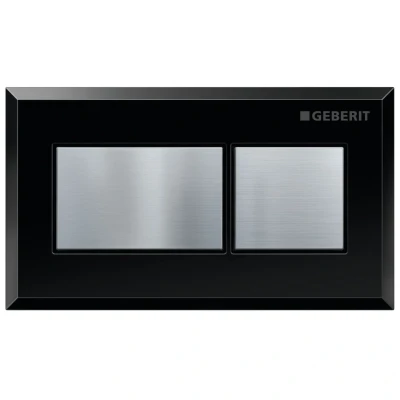 Geberit Pneumatic Dual Flush Plate - Square Design - Black / Chrome (116.051.KV.1) For pneumatic remote flush actuation of Geberit exposed and concealed cisterns For releasing a dual flush For solid and drywall construction For concealed installation For Sigma concealed cisterns 12 cm For Omega concealed cisterns 12 cm For Delta concealed cisterns 12 cm For Kappa concealed cisterns 15 cm For bathroom furniture Genuine brand new Geberit product, covered by a Geberit manufacturer's guarantee.