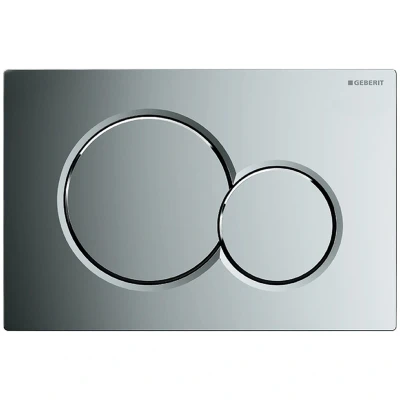 General description This gloss chrome Sigma01 flush plate is part of the largest selling Sigma flush plate series in the UK. It features two round dual flush, water-saving buttons that pair well with the curves of any round toilet pan. Designed for modern bathrooms, it combines functionality with a sleek aesthetic. Technical specifications Flush Plate Type: Dual Flush Flush Plate Height: 164 mm Flush Plate Width: 246 mm Flush Plate Depth: 13 mm Actuation Force: < 20 N Material: Plastic Weight: 0.50 kg Colour: Chrome Shape: Rectangular Style: Modern Manufacturer Part Number: 115.770.21.5 Compatibility and accessories Compatible with Geberit Sigma 12cm or 8cm concealed cisterns Includes mounting frame and hardware Suitable for Geberit DuoFresh module Installation Tool-free fast adjustment Delivered with 2 distance bolts and 2 actuator rods Usage Front actuation for easy operation Water-saving dual flush functionality Other information Supplied with a 5-year guarantee from the