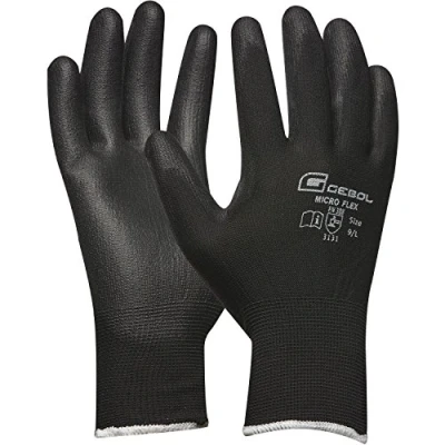 Gebol 709244S Micro Transfer Paper Size 10 Black Fine Knitted Work Gloves with PU Coating 1 Pair, Extra Large)