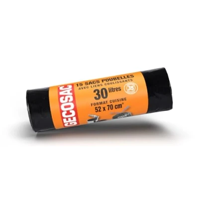 GECOSAC Bin Liners with Sliding Lines, 30 litres, Polyethylene, Universal, 50 x 70 cm, Black