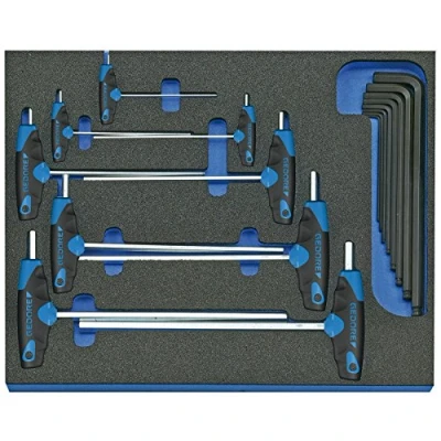Simple optical completeness testing thanks to 2-colour foam inserts Particularly suitable for working in sensitive areas where no tools are left behind Underlay blue, top layer black, blue indicates missing tool Gedore quality, Weight: 1.763698096 Pounds, Manufacturer: GEDORE