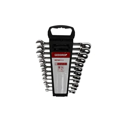 EASY TO USE: The set contains combination spanners with 15° offset jaw opening, 5° reverse angle and reversible ring ratchet, for fast loosening and tightening HIGH-QUALITY WORKMANSHIP: The non-glare matt satin chrome-plated steel spanners with girder shaft lie well in the hand and give a good grip even with oily hands VERSATILE USE: The set contains a practical selection of twelve open-ended spanners with the same AF size at each end, from 8 to 19 mm, organised in a handy holder SMART QUALITY: The GEDORE red range includes hammers, pliers and many other tools for the do-it-yourselfer With their superb value for money, they meet all industrial standards SCOPE OF DELIVERY: 1 x GEDORE red combination ratchet spanner set, 12-piece, AF: 8-19 mm, weight: 1576 g, item number: R07205012, Weight: 3.527396192 pounds, Manufacturer: GEDORE