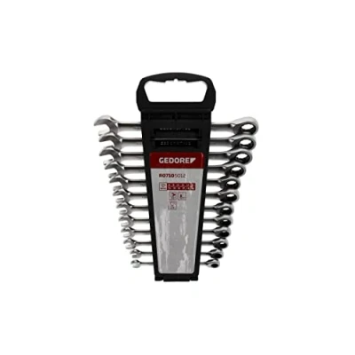 EASY TO USE: The set contains combination spanners with 15° offset jaw opening, 5° reverse angle and ring ratchet, for fast loosening and tightening HIGH-QUALITY WORKMANSHIP: The non-glare matt satin chrome-plated steel spanners with girder shaft lie well in the hand and give a good grip even with oily hands VERSATILE USE: The set contains a practical selection of twelve open-ended spanners with the same AF size at each end, from 8 to 19 mm, organised in a handy holder SMART QUALITY: The GEDORE red range includes hammers, pliers and many other tools for the do-it-yourselfer With their superb value for money, they meet all industrial standards SCOPE OF DELIVERY: 1 x GEDORE red combination ratchet spanner set, 12-piece, AF: 8-19 mm, weight: 1569 g, item number: R07105012, Weight: 4.2108292042 pounds, Manufacturer: GEDORE