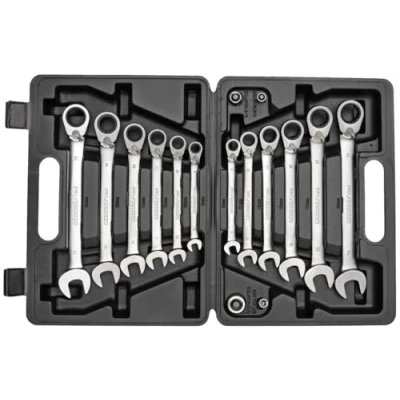 EASY TO USE: The set contains combination spanners with 15° offset jaw opening, 5° reverse angle and reversible ring ratchet It also contains square adapters and a bit adapter HIGH-QUALITY WORKMANSHIP: The non-glare matt satin chrome-plated steel spanners with girder shaft lie well in the hand and give a good grip even with oily hands VERSATILE USE: The set contains a practical selection of adapters and 16 open-ended spanners with the same AF size at each end, from 8 to 19 mm, organised in a sturdy case SMART QUALITY: The GEDORE red range includes hammers, pliers and many other tools for the do-it-yourselfer With their superb value for money, they meet all industrial standards SCOPE OF DELIVERY: 1 x GEDORE red combination ratchet spanner set, 16-piece, AF: 8-19 mm, weight: 2100 g, item number: R07203016, Weight: 4.40924524 pounds, Manufacturer: GEDORE