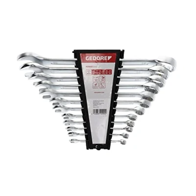 Extensive combination spanner set with 12 keys for tightening and loosening hex screws, spanner size 10 - 32 mm, wide range of applications - suitable for DIY enthusiasts and professionals Practical compilation with the standard SW sizes: 10-14, 17, 19, 22, 24, 27, 30 and 32 mm, cranking of the ring side by 15° for easier working on flat surfaces Same key widths: size of jaw and ring in the same size, easy to see the sizes thanks to the embossing on keys High-quality workmanship, precisely fitting and clear organisation in practical holder with suspension, glare-free surface matt satin chrome plated Box contents: 1x Gedore red combination spanner set with holder, 12 pieces, spanner sizes: 10 - 32 mm, weight: 2.5 kg, dimensions: 24 x 20.9 x 24 cm, R09105012, 3300990, Weight: 7.054792384 pounds, Manufacturer: GEDORE