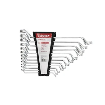 Extensive double ring spanner set with 12 keys for tightening and loosening hex screws, versatile uses - suitable for DIY enthusiasts and professionals Practical composition with the most common sizes: 6x7, 8x9, 10x11, 12x13, 14x15, 16x17, 18x19, 20x22, 21x23, 24x27, 25x28, 30x32 mm Different spanner widths: 2 sizes per key for best possible size coverage, easy visibility of sizes thanks to embossing on keys Clear organisation in a practical holder with hanger, glare-free surface matt satin chrome-plated, 5° angled ring sides for easier work on flat surfaces Box contents: 1x Gedore red double ring spanner set including holder, 12 pieces, spanner widths: 6 - 32 mm, weight: 3.55 kg, dimensions: 24.6 x 21.4 cm, 3300928/R01105012, Weight: 7.4075320032 Pounds, Manufacturer: GEDORE