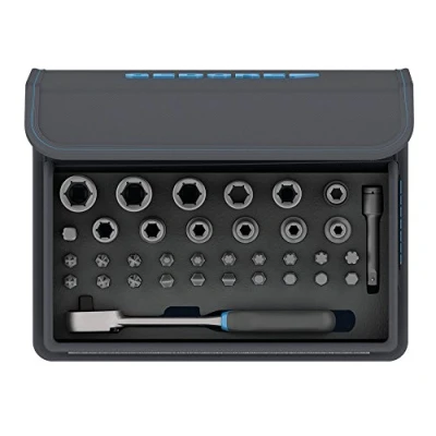 GEDORE TC 666 MU 20/35 Piece Bit Socket Set with Ratchet 1/4 Inch in Textile Bag Carry Handle/Lever Ratchet/Extension/Gimbal Extension/Power Screwdriver Inserts/Adapter