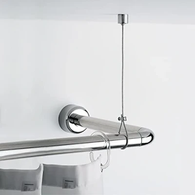 Gedy chrome, shower bracket, Measurements: 0.5X150X2 cm, Height Adjustable Up to 150 Steel Curtain Cable, Ceiling Mount with Finish, R&D Design, 2 Years Warranty, Unique