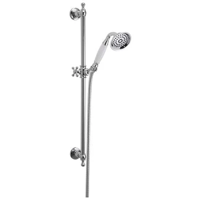 Fixed slider bar 70 cm diameter 25 mm with movable stand made in ABS Shower handle made of ABS 150 cm hose made of stainless steel and brass with double stapling, anti-twist and resistant to bending Universal connection 1/2"