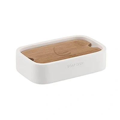 Gedy White Melbourne Soap Bar, Dimensions and Weight: 3 x 12.8 8.2 cm & 0.25 kg, Solid Holder Made of Resins, Bamboo Finish, R&D Design, 2 Years Warranty, Unique