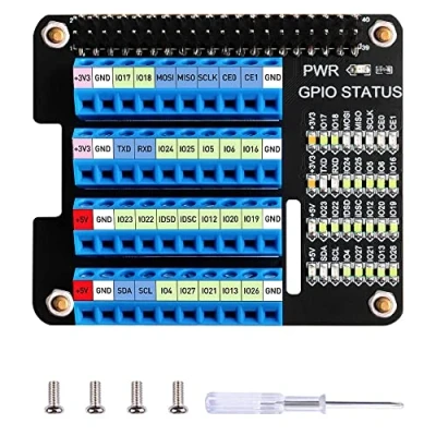 GeeekPi Raspberry Pi GPIO Screw Terminal Block Breakout Board HAT with Status LED, Expansion Module for 4B/3B+/3B/2B/B+/Pi Zero W/Pi 2 W