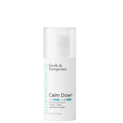 Geek & Gorgeous Calm Down 4% PHA + BHA liquid exfoliant, gives healthy glow while soothing, protecting hydrating skin all types, 30ml