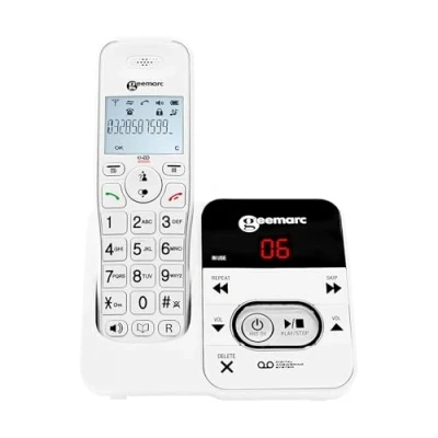 Geemarc Amplidect 295 Amplified Cordless Home Telephone with Answering Machine and Extra Large Buttons for Seniors Low to Medium Hearing Loss Aid Compatible UK Version