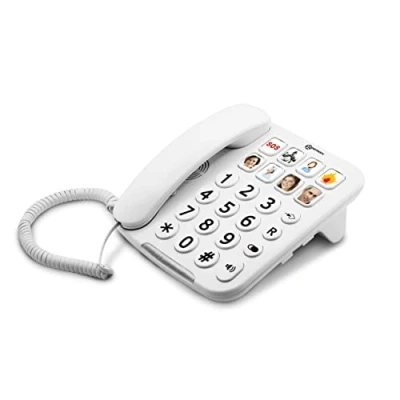 π HEARING AID COMPATIBLE - This product is designed for people with low to medium hearing loss. If you are wearing hearing aids and wish to use them while on the phone, simply put your hearing aids on the βTβ setting. π’ VOLUME BOOST CONTROL - The PhotoPHONE 110 has an adjustable receiving volume which can be increased up to 30dB. If during a conversation you do not hear the voice of your interlocutor very well, you can press the boost button on the phoneβs keypad to have the sound coming from the receiver amplified. It is also possible for you to have this extra amplification activated automatically each time you pick up your phone. π EXTRA LOUDER RINGER - You will never miss a call thanks to this phone's 85dB loud ringtone. To give you an idea, this is more or less as loud as a hairdryer. And even if the sound doesn't attract your attention, the phone's bright visual indicator surely will! π NO MAINS POWER NEEDED - The PhotoPHONE 110 does not need to be plugged into the mains, all you need to do to have it work is to connect it to your landline! π¨βπ©βπ§βπ¦ PHOTO MEMORY - This phone has 8 one-touch memories with customisable pictures that allow you to call your loved-ones, a medical professional, or the emergency services at the press of a button. π’ EASY TO USE LARGE BUTTONS - Thanks to the 14mm high digits on its large and widely spaced buttons, the PhotoPHONE 110 is also an ideal phone for visually impaired people, who will not have difficulties dialling a number on its keypad. βοΈ SPEAKERPHONE - The PhotoPHONE 110 has a hands-free function that can be activated during calls by pressing a button on the keypad. That same button can also be pressed to answer your phone when it is ringing without you having to pick up the handset at all.