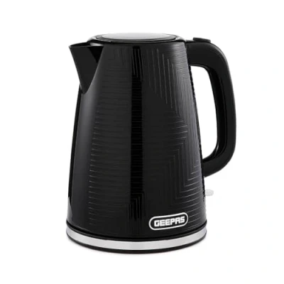 Geepas 1.7L Cordless Electric Kettle 3000W Textured Premium with 360 Rotational Base Concealed Heating, Otter Control l Space Saving Cord Storage & LED Indicator 2 Year Warranty, Black