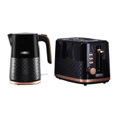 ✅ 3000W RAPID BOIL, 360-DEGREE ROTATION - Experience rapid boiling with the 3000W kettle, featuring a one-touch switch operation. Enjoy cordless convenience as the kettle detaches completely from the base, while its 360-degree rotation allows for easy handling. Accurately measure water with a water gauge, ensuring precise preparation of hot beverages like tea, coffee, or water for your convenience and enjoyment. ✅ CAPACITY 1.7L, SAFETY - The 1.7L large capacity allows this kettle to serve about 6 to 7 cups of water for you and your family each time. The boil-dry protection automatically switches off the heating element when there is no water in the water tank or if the water runs out during use. To be able to use the appliance again, fill the water tank with cold water up to the MAX indication. ✅ PREMIUM DESIGN, OTTER CONTROLLER: Features an elegant rose gold chrome handle for a luxurious touch. With Otter controller ensures long-lasting, safe, and reliable performance. ✅ BLUE ILLUMINATED LED LIGHT BUTTON- Sleek and stylish design with water gauge, give you a precise observation with water volume and boiling process, and the kettle otter controller button will illuminate blue during heating water - An elegant addition to your kitchen. ✅ 2 SLICE TOASTER, EVEN, AND FAST TOASTING - Experience even and fast toasting with the Geepas 2-slice toaster, featuring wide slots designed to accommodate bread types. Effortlessly prepare breakfast with its auto-pop-up feature when toasting is complete. Blending modern design with practical performance, this 870W toaster is a perfect addition to any household., Weight: 5.070632026 Pounds, Manufacturer: GEEPAS