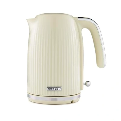 GEEPAS 1.7L Electric Kettle Cordless Jug with Rapid Boil Auto Shut Off & Dry Protection 360 Rotational Base, Removable Washable Filter for Hot Water Coffee Tea 3000W Fluted Cream