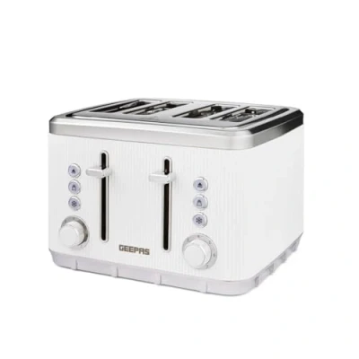 GEEPAS 4 Slice Toaster 7 Browning Levels Eject Defrost Reheat Function For Thin Small Bread Removable Crumb Tray High Lift Lever Space Saving Design 2 Yr Warranty 1860W Arcus White