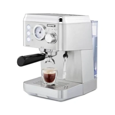 ✅ 15 BAR HIGH PRESSURE BREWING: Enjoy rich and flavourful barista-quality beverages, single or double espresso, cappuccino or latte with a 15-bar pressure system, ensuring optimal extraction of ground coffee during the brewing process, extracting smoother and more delicate coffee for a delightful coffee experience. ✅ INTEGRATED MILK FROTHER: Create creamy and frothy textures effortlessly with High Pressure Frothing Function, allowing you to indulge in lattes, cappuccinos, and macchiatos with barista-quality foam. ✅ PRECISION TEMPERATURE CONTROL: The analogue thermometer gauge on this espresso machine is a valuable tool for achieving the perfect coffee. It helps you monitor and maintain the ideal temperature range, ensuring that your coffee is brewed to perfection every time. ✅ LARGE 1.8L WATER TANK, REMOVABLE DRIP TRAY: The 1.8L capacity means fewer refills, providing convenience and uninterrupted brewing sessions, perfect for busy mornings or entertaining guests. Removable drip tray for easy cleaning, simply remove the drip tray when using tall glasses. ✅ DURABLE STAINLESS STEEL HOUSING, 1 & 2 CUPS DUAL STAINLESS STEEL FILTER : A sleek and robust stainless steel construction ensures durability, complementing modern kitchen aesthetics while withstanding daily use., Manufacturer: GEEPAS
