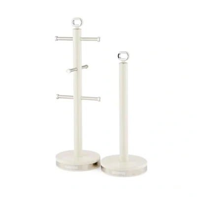 GEEPAS Mug Tree and Towel Pole Set Rust Corrosion Free Carbon Steel Material Non Slip Base Standing Design Kitchen Counter Storage Space Saver Holds Upto 6 Mugs Retrovive Collection Cream