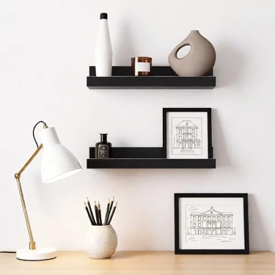 MODERN & SPACE-SAVING DESIGN: Add modern style to any room without taking up floor space. Our black floating shelf creates a seamless look, ideal for displaying collectibles and décor. MODERN SEAMLESS INSTALLATION: These wall mounted shelves includes all hardware and instructions for quick setup. The seamless design makes these black floating shelves for wall look built-in. MULTI-PURPOSE DISPLAY: Use these picture shelf ledge designs for displaying pictures, books, or perfumes. A clean addition to any floating wall shelves for living room collection. ORGANIZED STORAGE FOR ANY ROOM: Ideal for utilising wall space. Organize books and décor in the living room. Store cosmetics in the bathroom and personal items in the bedroom. SPECIFICATIONS: Item Dimensions: Width: 10 cm, Depth: 5 cm, Height: 30 cm / Weight: 660 g / Package Dimensions: Height: 12 cm, Width: 31 cm, Depth: 6 cm / Package Weight: 660 g / Material: Plastic / Color: Black / Fixtures and Fittings Included