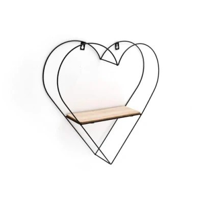 This Heart shaped Shelf is wall mounted and would look stylish in any home. The shelf is sized 26.5x9x1, with the distance from the top of the shelf to the top of the heart being 21cm. This item comes with 2 wall fittings. Overall measurements are: D10 x H42 x W41cm