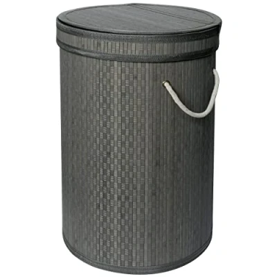 Cylindrical laundry basket in bamboo grey and fabric. Its exotic design will give a natural touch to your wellness area Easily portable with its 2 handles Dimensions: 55 x 38 x 7 cm 2-year warranty