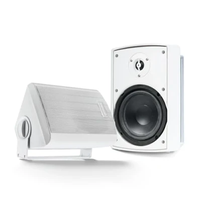 PLUG-IN POWER MEETS BLUETOOTH: Combine the stability of wired power with the convenience of bluetooth speakers wireless streaming. Connect the included power adapter to the active speaker, link the passive one via cable, and stream from any mobile device. It’s a simple, no-fuss way to enjoy crisp audio for casual get-togethers or daily background tunes. WEATHER-RESISTANT BUILD: These IP44-rated speakers for outdoor use shrug off light rain, dust, and splashes without skipping a beat. Crafted with sturdy ABS cabinets, they’re well-suited for patios, gardens, or poolside setups. Focus on living the moment rather than stressing over damage—this outdoor speaker design is made to last. RUST-PROOF ALUMINUM GRILLS: Engineered to resist corrosion better than typical iron grills, these outdoor wall mount speakers won’t fade or degrade over time. Leave them mounted year-round and maintain a pristine look that complements any space. Enjoy big, clear sound with the added reassurance of an enduring, weather-safe exterior. FULL AUDIO SPECTRUM: Driven by a D Class amplifier, the 5.25" woofer and 0.75" tweeter produce a balanced range—from clear vocals to assertive lows. Whether you want background tracks for a cozy night in or a vibrant outdoor speaker set for summer parties, these speakers deliver fidelity that exceeds expectations at this size. SIMPLE MOUNT & EXPAND: Each package comes with adjustable brackets, 26’ of speaker wire, and straightforward instructions. Place them on walls or under eaves to optimize coverage. An Aux input gives you wired music playback, while Bluetooth handles wireless audio. For larger gatherings, daisy-chain multiple pairs to build a more immersive outdoor audio system.