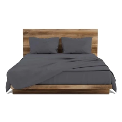 GEMITEX Bed Set Made in Italy 100% Cotton, Plain Colour, Double Size, Cotton Line, Grey with Anti Pilling and Hypoallergenic Treatment