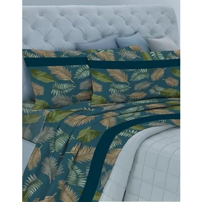 GEMITEX Cotton Bed Set, 100% Breathable Free of Harmful Substances, Certified Quality Standard 100 by OEKO TEX Confidence in Textile, Double Bed, G22/Blue, Designed Italy