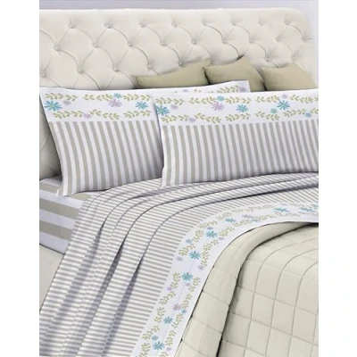 Cotton In double bed set, designed in Italy by Gemitex, 100% cotton. Thanks to its softness and freshness, the bedding set is perfect for all seasons. The bed linen is made of pure cotton without harmful substances, certified quality STANDARD 100 by OEKO-TEX, are hypoallergenic and breathable, also ideal against excessive sweating. 4-piece bedding set: 1 flat sheet 180 x 198 cm with elasticated corners, mattress height up to 25 cm; 1 top sheet 250 x 295 cm; 2 pillowcases 50 x 80 cm. Useful protective and reusable transparent pvc zip packaging Made entirely of 100% pure cotton with a title 20 free from harmful substances, OEKO TEX STANDARD "Confidence in Textiles" certified quality Washing Instructions: Machine Max 40°C, Iron on medium temperature, Do not bleach, Do not dry clean, Tumble dry at moderate temperature. Guaranteed durability and colour brilliance after washing. Gemitex guarantees that the cotton and dyes used to make this product are free from substances harmful to human health and the environment, in compliance with current international standards and certified OEKO TEX STANDARD "Confidence in Textiles"