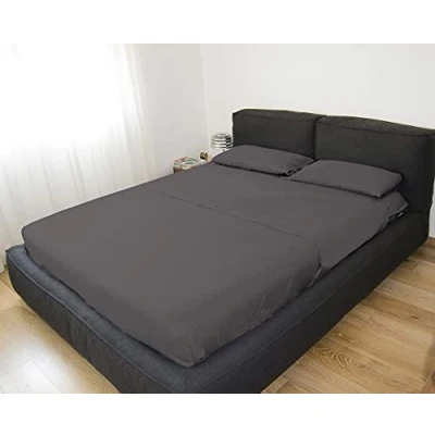 GEMITEX Double bed linen set in smoke grey, non iron, satin look, 100% polyester microfibre, consisting of 2 flat sheets and pillowcases, made Italy.