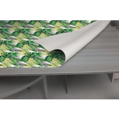 Table protector with double-sided printing, smooth and printed PVC on one side and soft and thick white PVC on the back, non-slip, shockproof, waterproof on one side, decorates and protects your table from bumps, scratches, liquids, finished with overlock edge Underlay Shockproof Non-slip DOUBLE SIDED