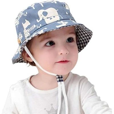GEMVIE Baby Boys Sun Bucket Hat Cartoon Animal Print Packable Beach Cap Fisherman for Toddler Kids Blue
