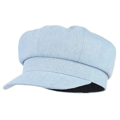 GEMVIE Women Cotton Denim Newsboy Hat 8 Panel Baker Boy Cap Cabbie Beret Sun Visor Light Blue