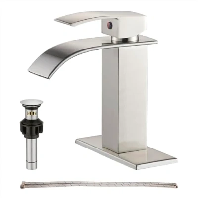 GENBONS Waterfall Single Handle Bathroom Vanity Sink Faucet with Metal Pop up Drain, Brushed Nickel Finish