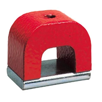General Tools and Instruments Alnico magnets featuring aluminum, nickel, and cobal alloy are built for heavy duty use and will not naturally demagnetize over time The strong magnetic pull of these industrial grade magnet makes it perfect for lifting, holding, sorting, clamping or retrieving steel or iron parts Alnico magnets will retain their magnetic force indefinitely; removable keepers insure a long life and optimum performance These horseshoe magnets feature a hole on top for attaching to conveyors, racks, welding jigs, and other applications This strong magnet weighs 6 ounces, measures 1-3/4 in. width x 1-1/8 in. height x 1-1/8 in. depth, the opening between poles is 7/8 inch and the cored hole is 3/16 inch; pulls up to 30 lbs, Weight: 0.4 pounds, Manufacturer: General Tools