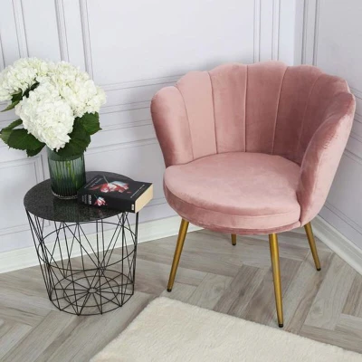 General description This luxurious FLORA upholstered velvet accent chair combines style and comfort, making it an ideal addition to any living space. With its classic design and plush, petal-shaped back, this chair provides a cozy seating experience that hugs your body perfectly. Available in a variety of elegant colors, it can seamlessly match your decor, whether you need a cozy reading nook or a stylish living room accent. Technical specifications Dimensions: D62 x H76 x W70 cm Seat Size: D50 x W51 cm Seat Height: 45 cm Back Height: 31 cm Weight: 7 kg Material: Velvet upholstery Legs: Golden chrome finish metal tube legs with non-slip feet Installation Easy to assemble Usage Perfect for creating a cozy reading nook Stylish addition to living rooms Other information *Colors may differ slightly depending on screen contrast and room lighting