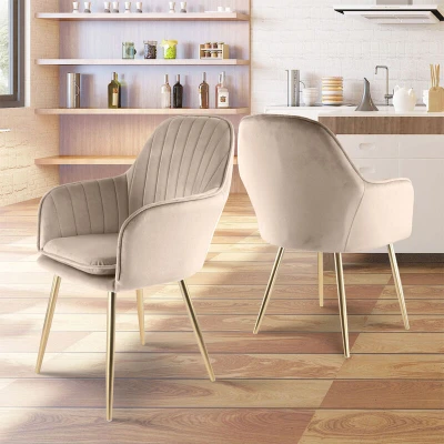 Genesis Muse Velvet Fabric Chair Set Of 2 With Golden Chrome Finish Metal Tube Legs (Taupe)