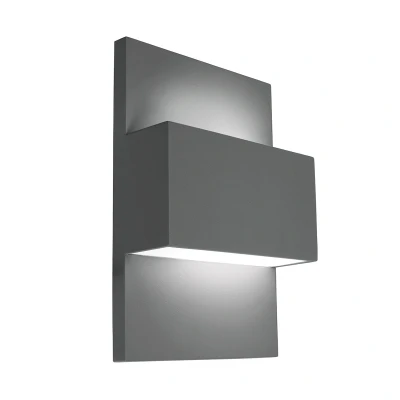 This architectural style wall fitting is constructed from robust die cast aluminium and features a central light source allowing light spread both up and down from the fixture through its opal polycarbonate lens. Finished in graphite.