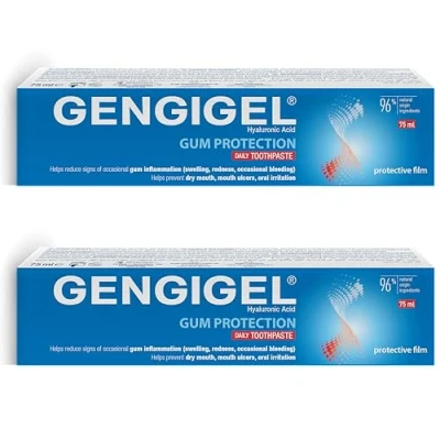 Daily Gum Protection: Gengigel toothpaste helps support gum health with hyaluronic acid, designed to maintain healthy gums and oral comfort as part of a regular brushing routine. Supports Gum Repair: The hyaluronan formula helps protect oral tissue and support the natural repair process of gums when they feel irritated or sensitive. Helps Manage Gum Irritation: Suitable for daily care when gums feel swollen, sensitive or prone to occasional bleeding, helping support healthier-looking gums. Fresh Mint-Lemon Flavour: A refreshing mint-lemon flavour helps maintain fresh breath while delivering gentle oral care for everyday brushing. Convenient Pack of 2: Includes two 75ml tubes, providing a longer-lasting supply for daily oral care and gum support when used alongside the wider Gengigel oral care range.