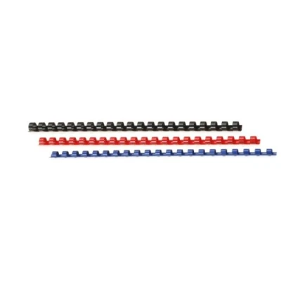 Pack of 20 plastic spiral binding combs, 21-hole punching, DIN A4 format (30 cm): 5 x 6 mm in white (25 pages) 5 x 8 mm in blue (45 pages) 5 x 10 mm in red (65 pages) 5 x 12 mm in black (95 pages)